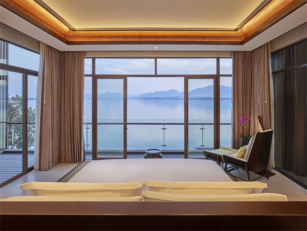 酒店拥有客房236间/套,散布在星罗密布的89套度假别墅和4栋度假公寓中,其中包含79套独栋别墅。其中君澜度假酒店的110间客房临湖而建,中式设计、独栋入户、依山傍湖,散布在岛上的别墅之中,每个房间都有宽阔的空间,均为70平米以上,配备宽敞阳台。