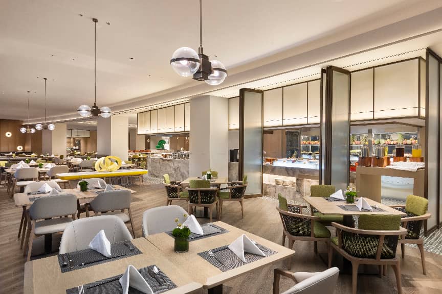 华邑品牌热忱发扬以“食”与“聚”为核心的中华待客之道。酒店不仅设有彩丰楼中餐厅,让宾客领略地道粤菜风味与本地融合菜,更配备鲜艳全日餐厅及麺家,带宾客感受全球美食与西北面食的魅力。专为静谧交谈和会客品茗而设的“举茗邑”,则为商务社交与私人欢聚提供了专属而雅致的社交空间。