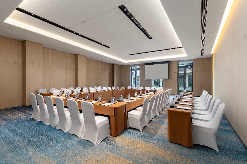 灵活会议,高效平衡 酒店拥有5个面积超过百平方米的会议室,可满足从中小型会议到团队培训等多种商务需求。下榻于此,商务宾客在工作之余,亦可漫步双照湖湿地公园放松身心。